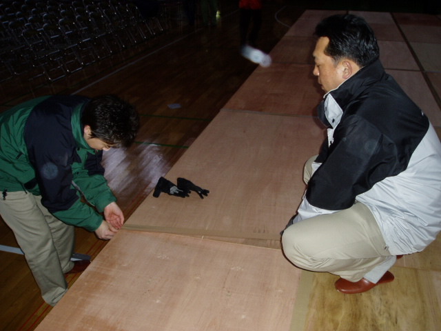 コンパネも、2~4枚を重ねて運び・・・指示を出す、NOZOMU氏